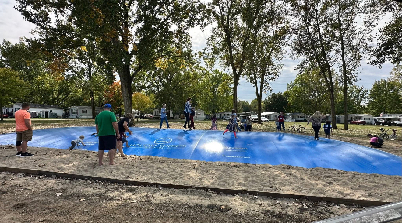 Bounce on our new jumping pillow, located adjacent to our sports courts.